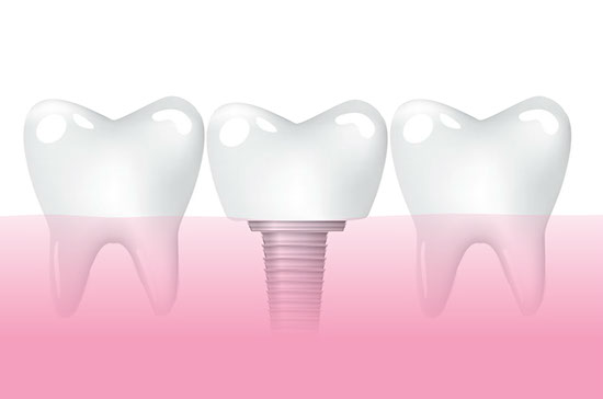A dental implant is a small metal post that acts as an artificial root for a missing tooth. It is embedded in the jaw bone in the same place as the tooth that was lost. Modern technology allows implants to integrate with the surrounding bone to create an extremely stable connection. Once implants are integrated, there are many possible tooth replacement options, depending on one’s situation, such as single tooth crowns, multiple tooth permanent bridges, or removable dentures.
